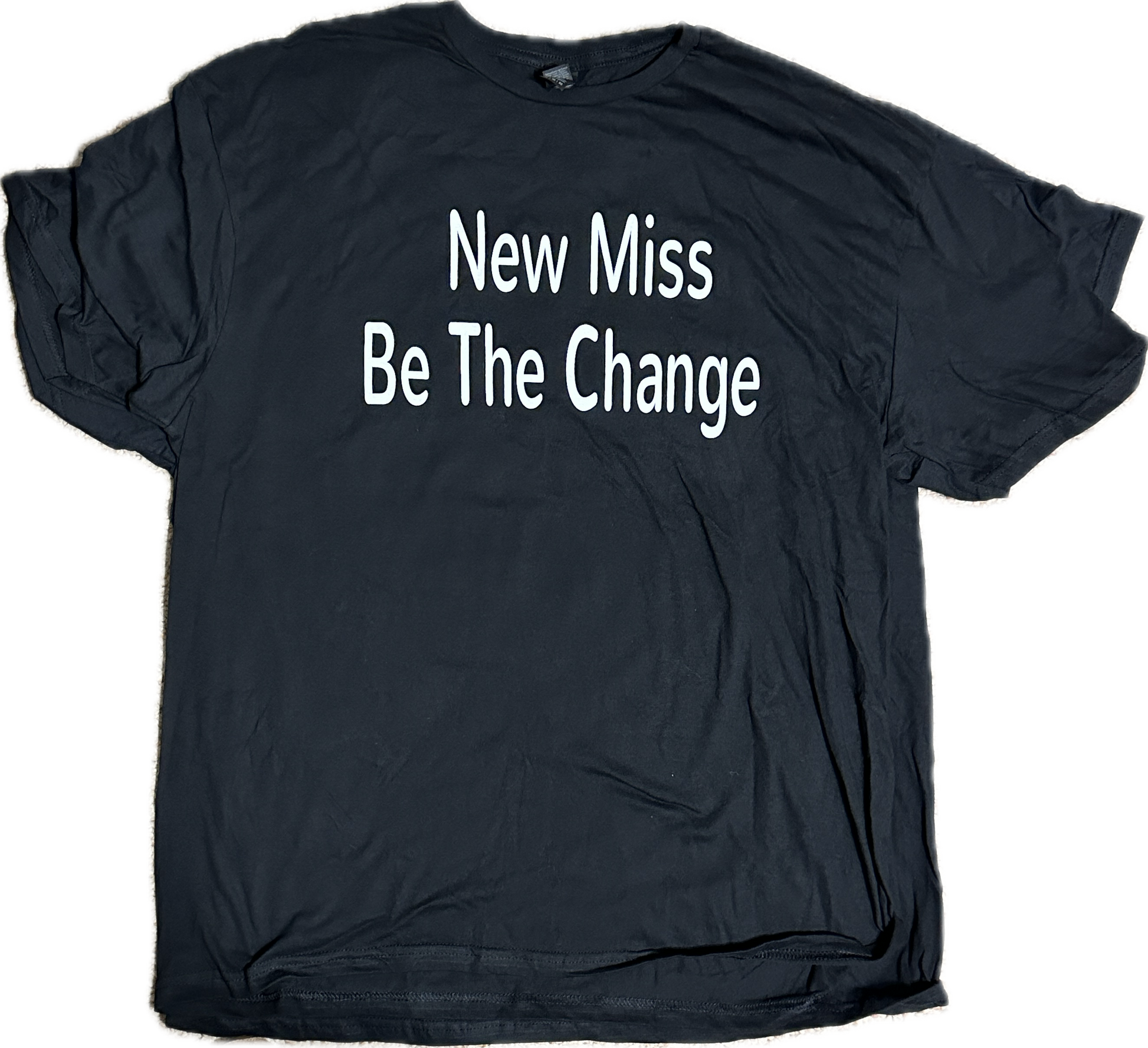 Limited Edition "New Miss Be The Change" Black short- sleeve T-shirt (soft BLOCK LETTERS- mid size on front)
